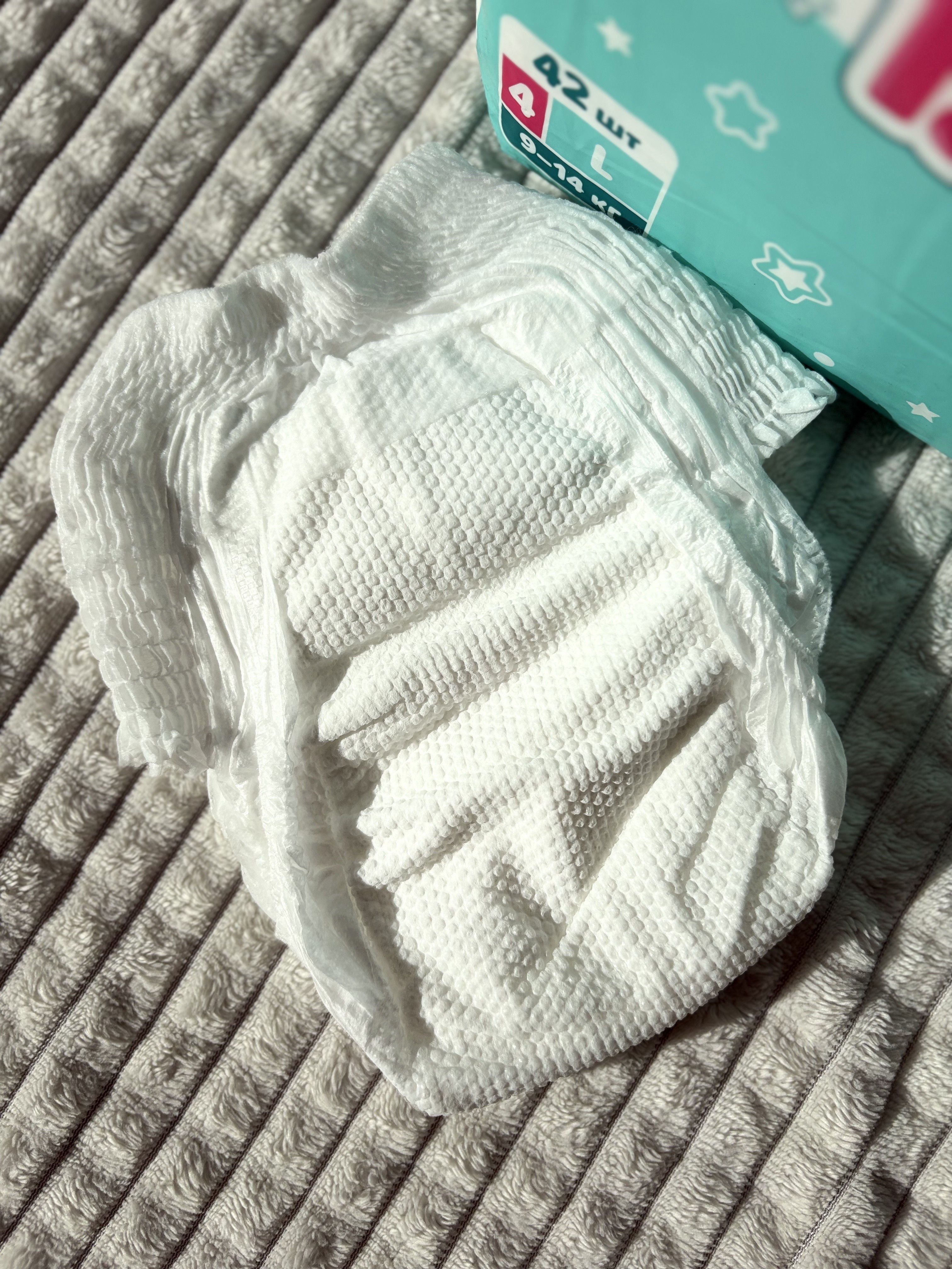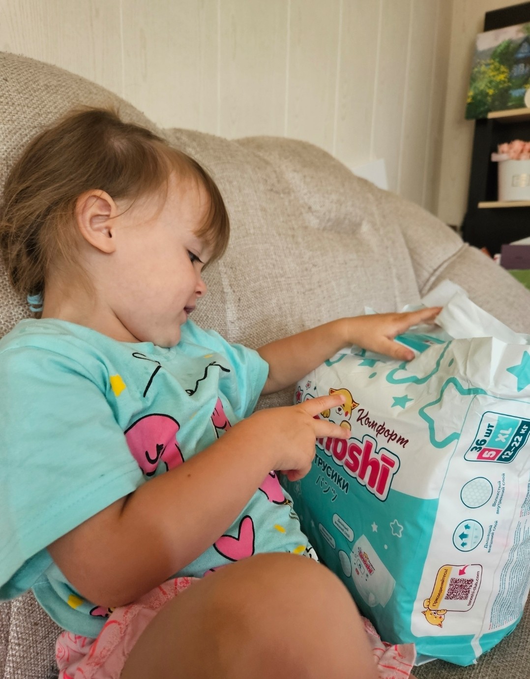 🥰Во-первых, они невероятно удобные. Трусики легко надевать и снимать, что делает процесс смены подгузника быстрым и простым. Мой ребенок может свободно двигаться, играть и ползать, не чувствуя дискомфорта.