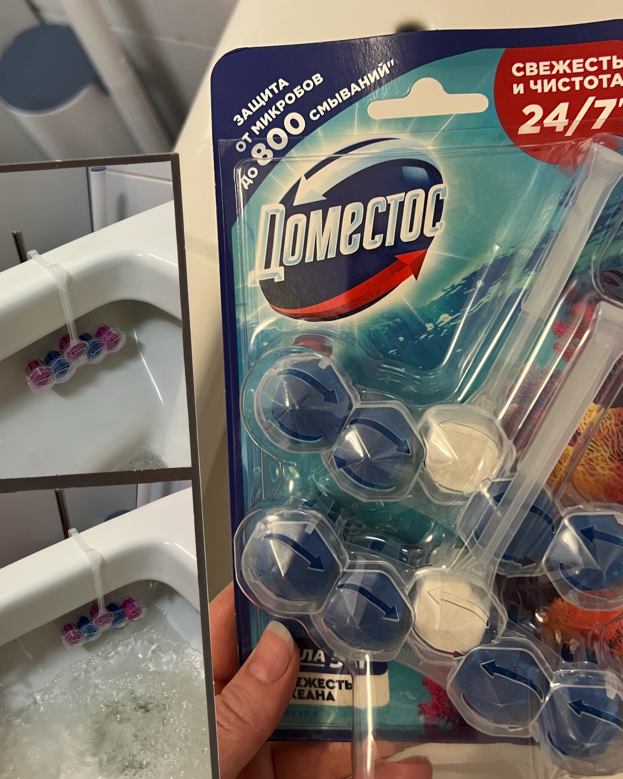 Благодаря проекту " НА ПРОБУ " у меня появилась возможность протестировать и оценить подвесные туалетные блоки для очищения унитаза Доместос: