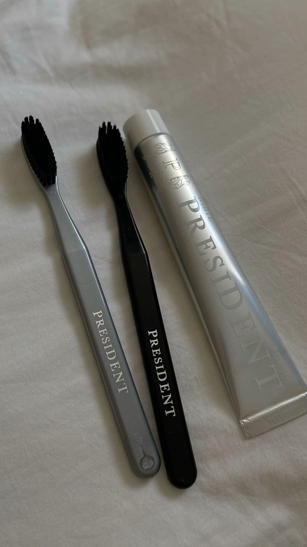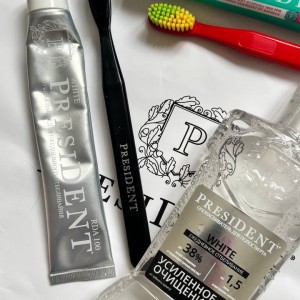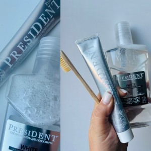 Хочу вам рассказать о классных продуктах от бренда PRESIDENT, которые я протестировала в рамках проекта НА ПРОБУ . Это целый набор для ухода за зубами — паста, щётка и ополаскиватель. Каждый продукт по-своему работает, а вместе они дают отличный результат для белизны и свежести ✨