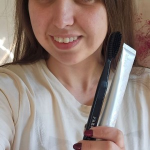 Это паста для ежедневного отбеливания. Она бережно очищает налёт, делает эмаль светлее и при этом не травмирует её. В составе есть исландский мох для расщепления налёта, мята для экстрасвежего дыхания и кальций-кремниевая композиция для защиты эмали. Мне понравилось, что она мягко работает, но эффект чистоты и свежести очень ощутимый.