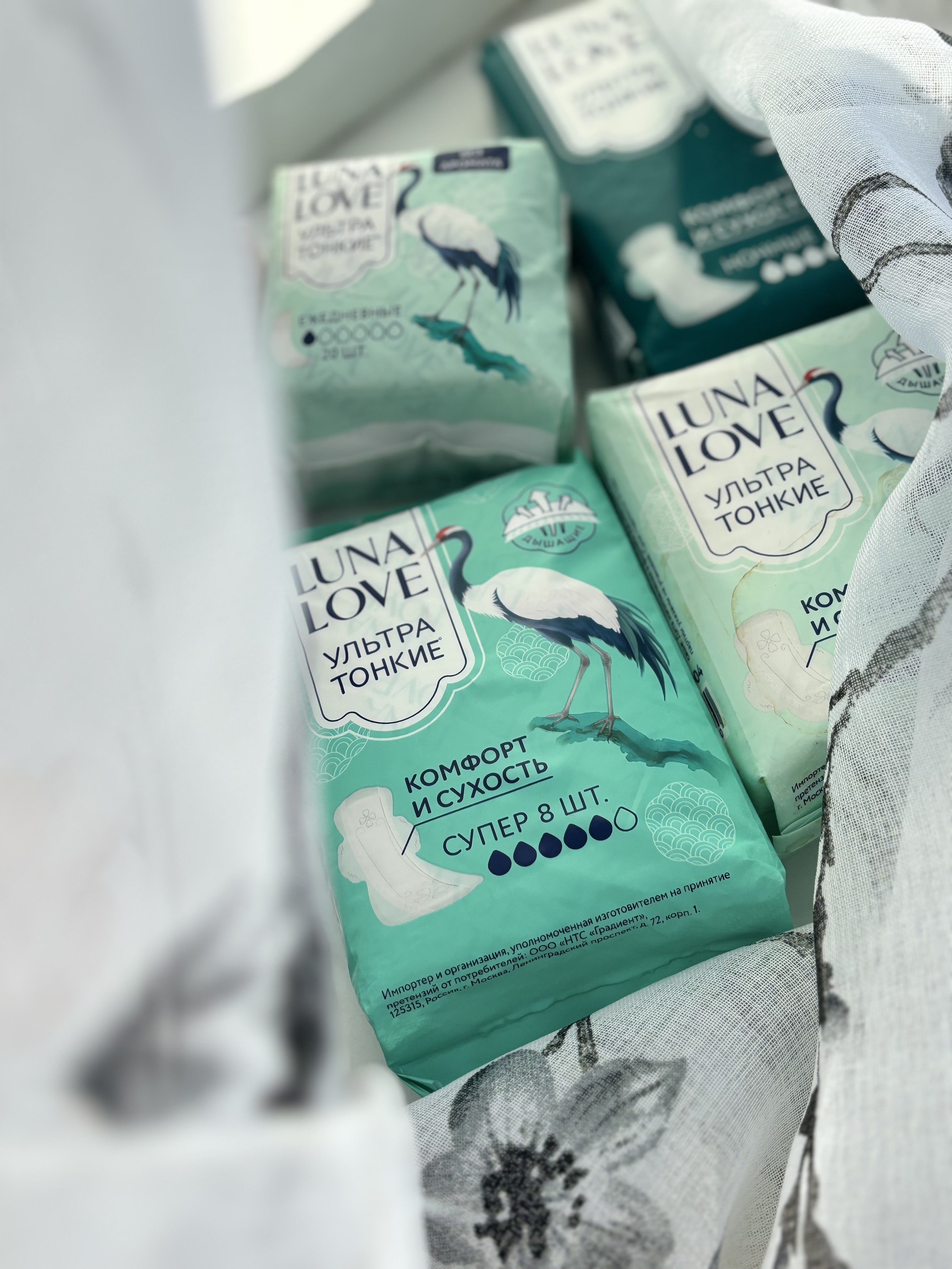 С прокладками Luna Love у меня случилась любовь с первого применения! Ультратонкие, нежные, с мягким, хорошо впитывающим верхним слоем. Они удобны в использовании и совсем незаметны под одеждой, обеспечивают непревзойденное ощущение комфорта и защиты в течение всего дня.