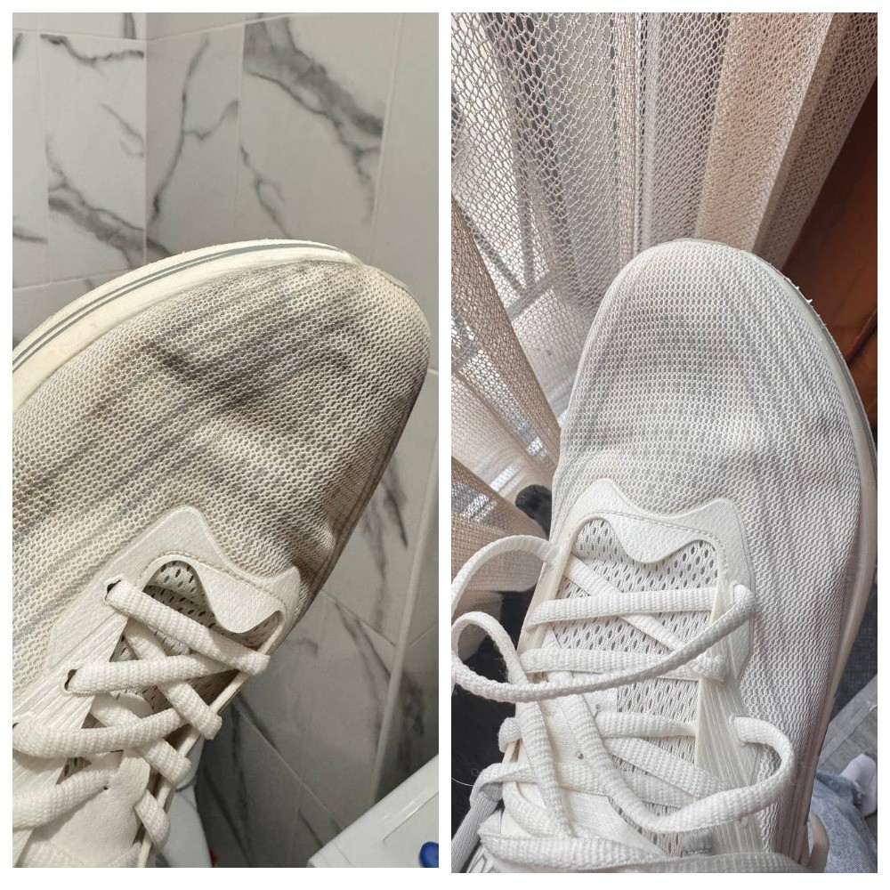 И ещё второй подопытный Саша, точнее его рабочие светлые кроссовки которые напрочь убиты пылью/грязью.