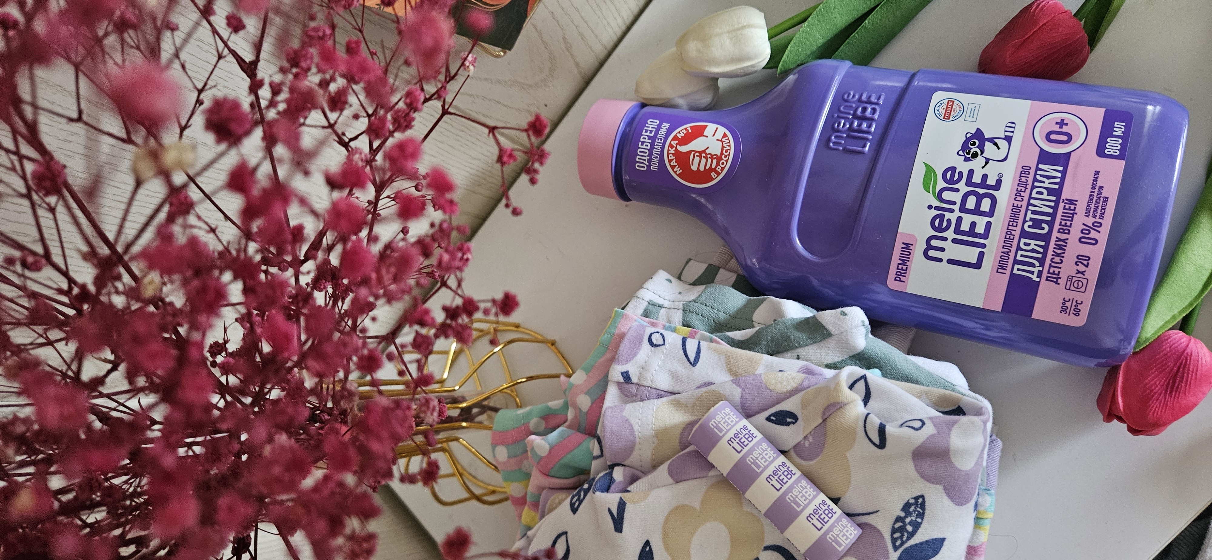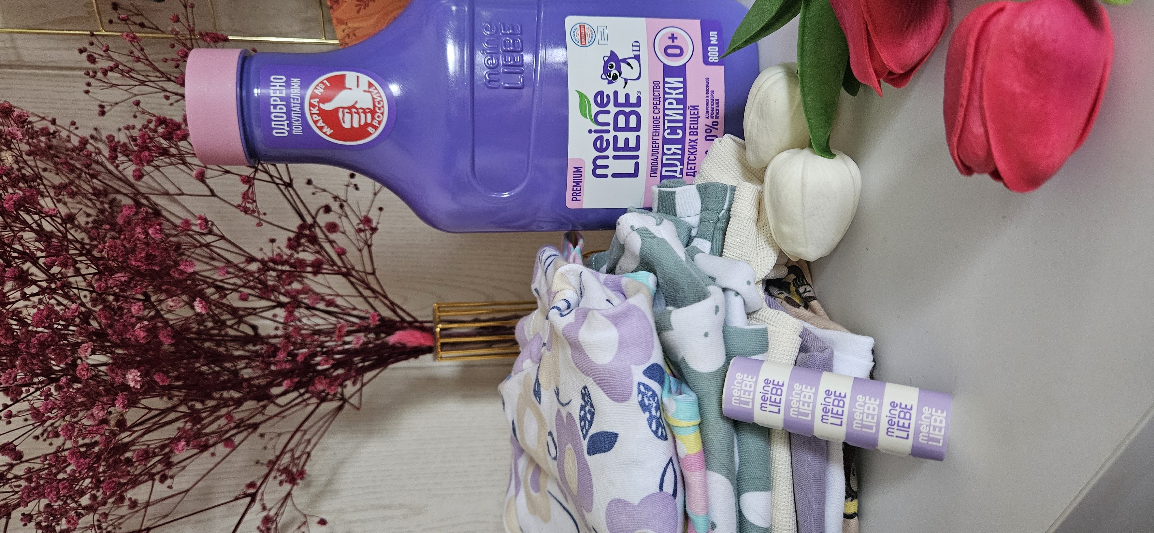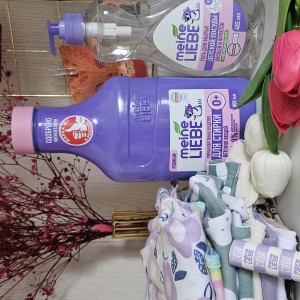 Очень понравилось, что он мягкий, без отдушек и красителей, отлично выполаскивается даже на коротких циклах стирки.