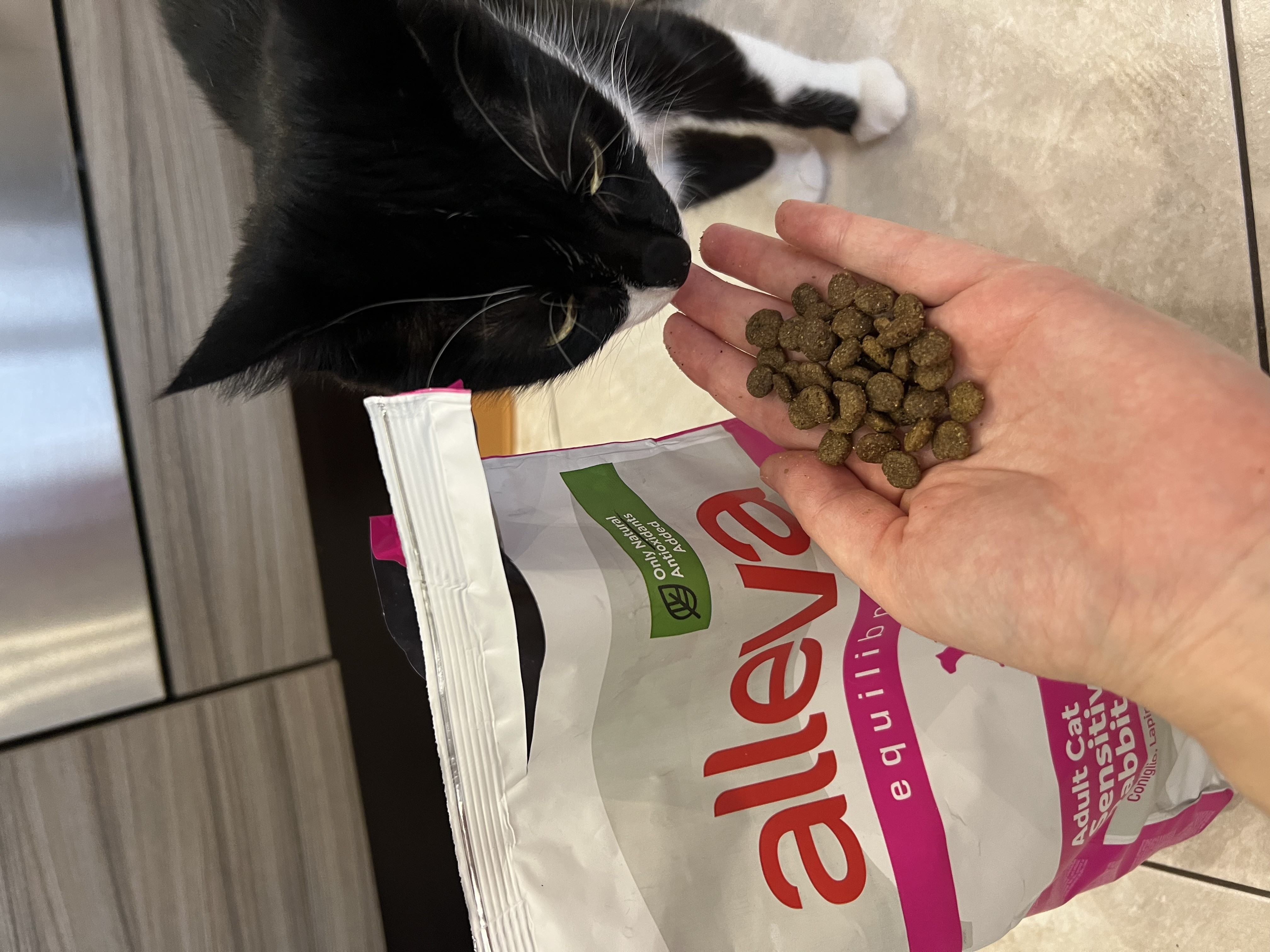 Киса у нас с характером: то ей невкусно, то запах не тот, то после еды проблемы с животиком. Поэтому кормов мы перепробовали множество, подходим к выбору тщательно. На пробу недавно нам прислали Alleva Equilibrium Sensitive Rabbit и он стал фаворитом 👍🏼