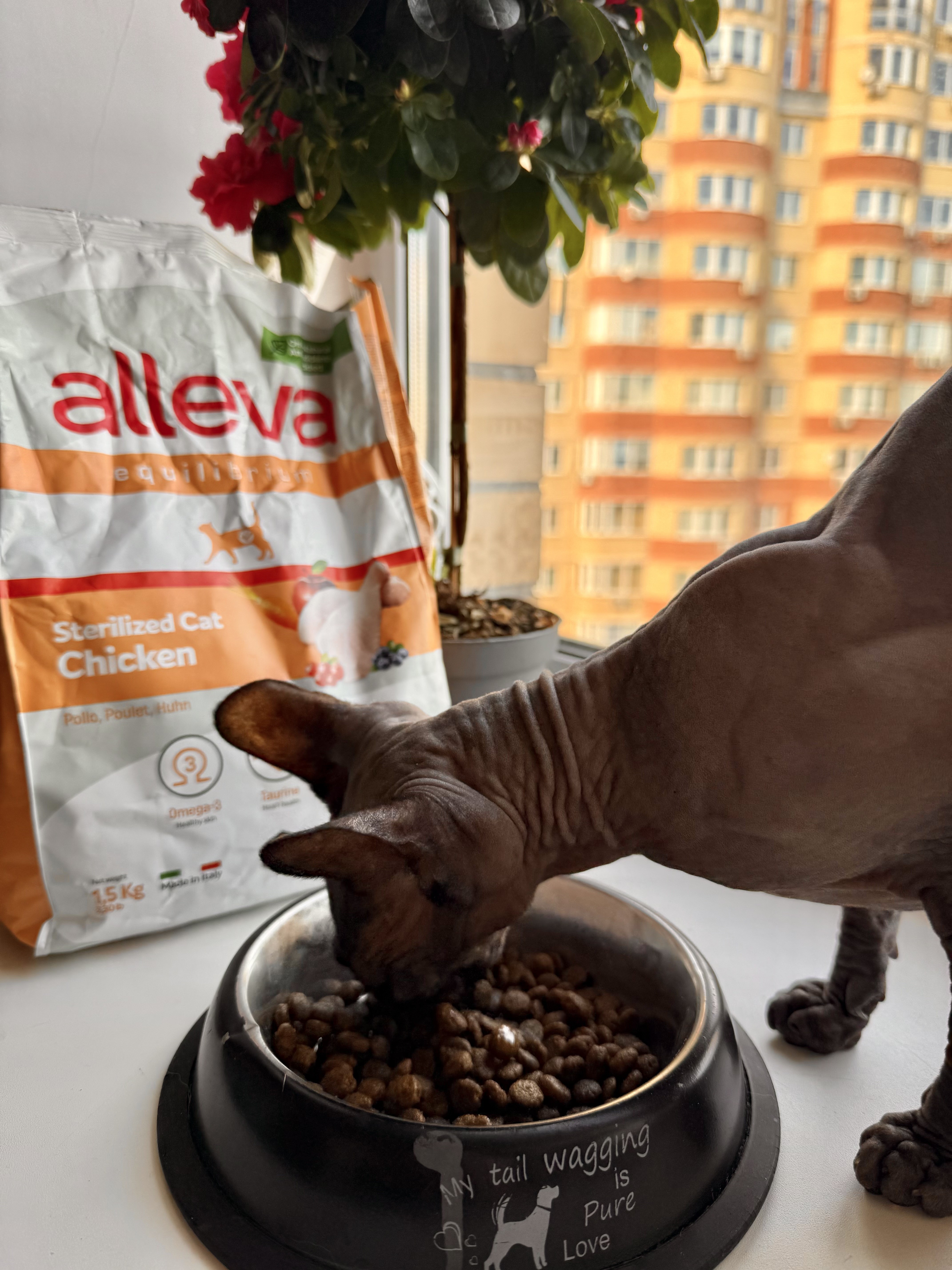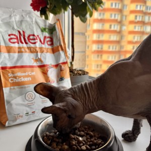 Alleva Sterilized Cat Chicken Норику понравился с первой миски!