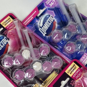 Серия Сила 5в1 “Свежесть океана” дарит ощущение морской прохлады и эффективно борется с известковым налётом. Лимитированная коллекция Сила 5в1 “Ягодный бриз” добавляет яркий аромат спелых ягод и освежает унитаз при каждом использовании.