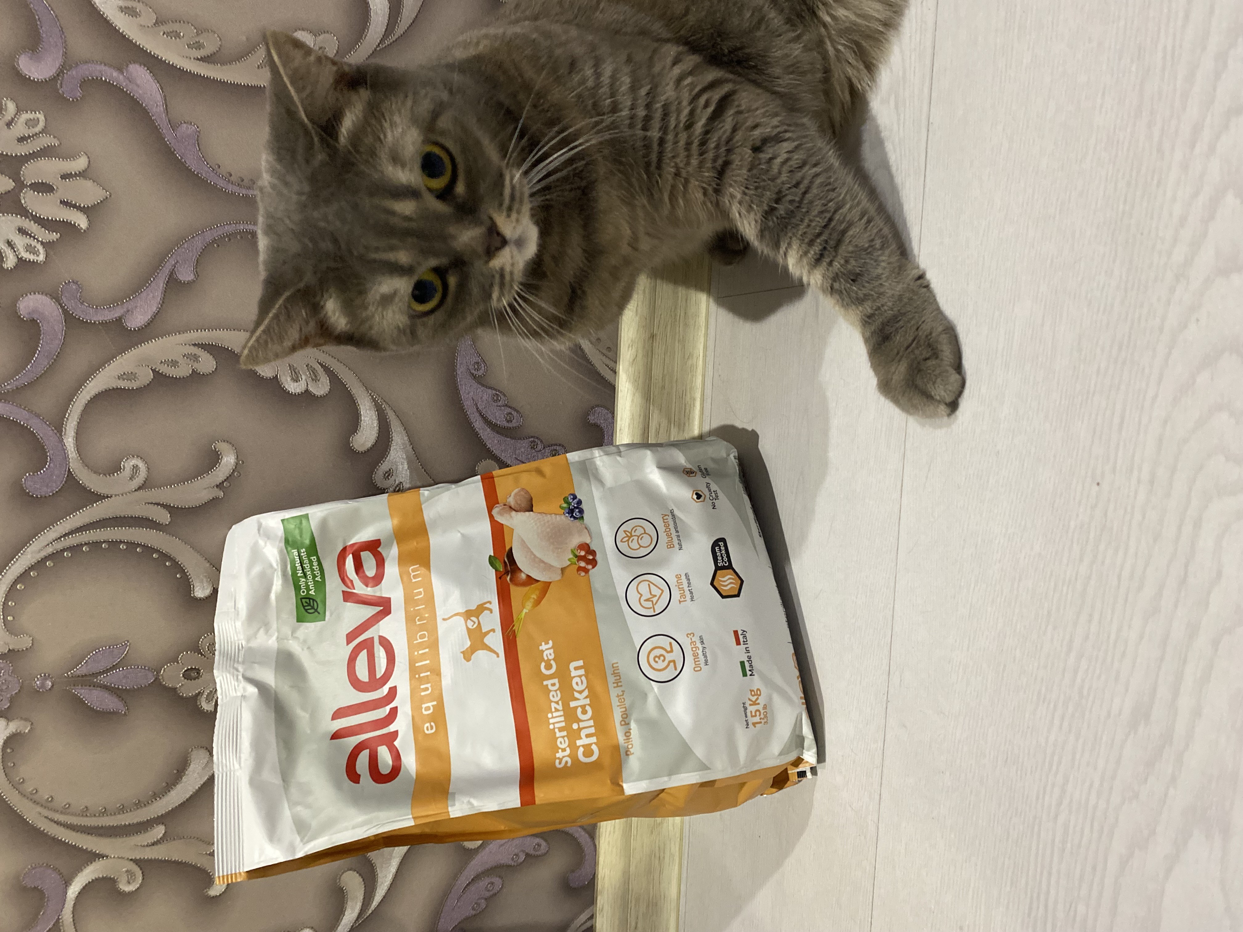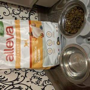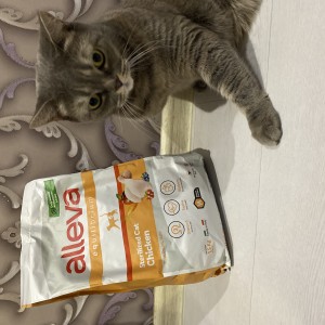 И вот мы пробуем в рамках проекта Сухой корм Alleva Equilibrium Chicken Sterilized Cat для кастрированных котов и стерилизованных кошек с курицей.