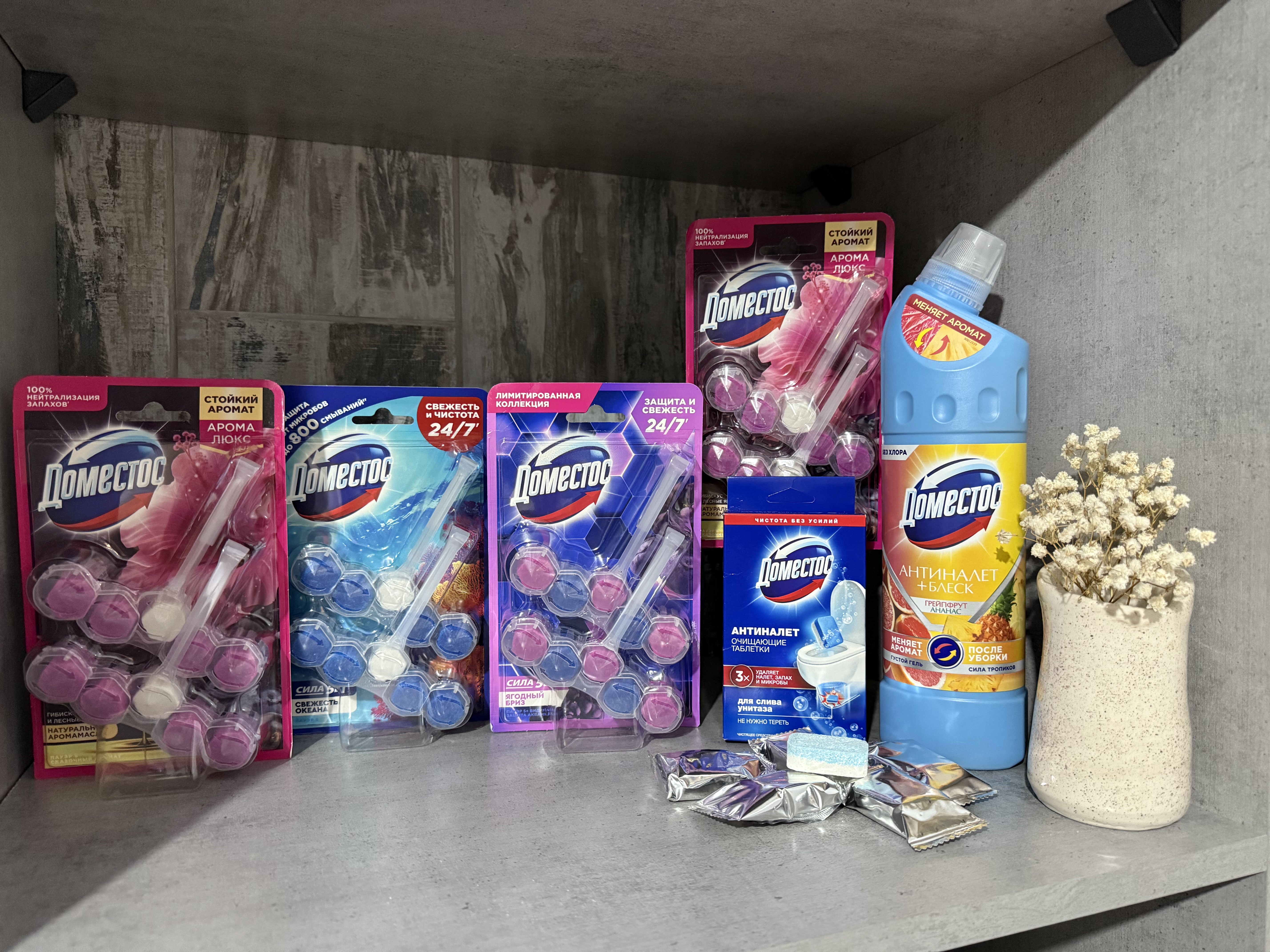 Удивлена ароматами Доместоса, можно не использовать аромадиффузоры в ванной комнате, а чистота и блеск✨ теперь без усилий💦