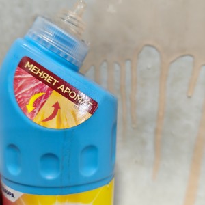 Что бы повесить блок для унитаза для начала делаем уборку, заливаем средством чистящим. Не устану говорить про запах, он яркий, вкусный и совсем не режущий глаз как хлорка, а так же присутствует оранжевый цвет и я наконец-то блин вижу где я его использую, а не напрасно выливаю пол упаковки в надежде "ну хоть где то попало". Так же бросаю одну таблетку в унитаз и ухожу спать.