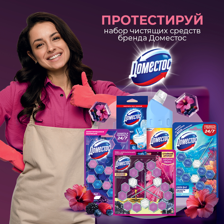 08.12 – 24.12.2025 года: тестирование, обсуждение тестируемой продукции бренда Доместос, отзывы о тестировании, мнения на различных интернет-ресурсах с хэштегами и отметками #доместос_напробу #доместос #naprobucom. Если вы получили посылку раньше 08 декабря, уже попробовали продукцию и готовы поделиться своим мнение – пишите нам, мы будем рады более ранним отзывам.