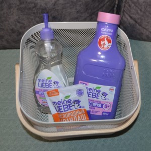 2. Гель для мытья посуды, овощей, фруктов, детских игрушек Meine Liebe. Моей дочери 1,8 , но я все ещё мою ее посуду специальными детским гелем, чтобы максимально обезопасить ее организм от воздействия пусть не токсичных, но не самых полезных химикатов. Поэтому я выбрала гель Meine Liebe, который полностью смывается с поверхности посуды и даже подходит для мытья фруктов и овощей. Несмотря на мягкий, натуральный состав средство отлично справляется даже с жирным налетом и засохшей кашей.